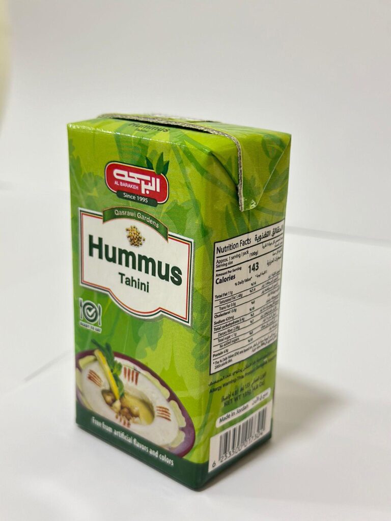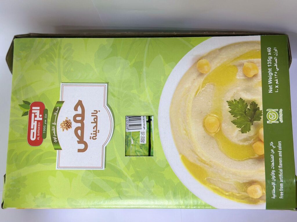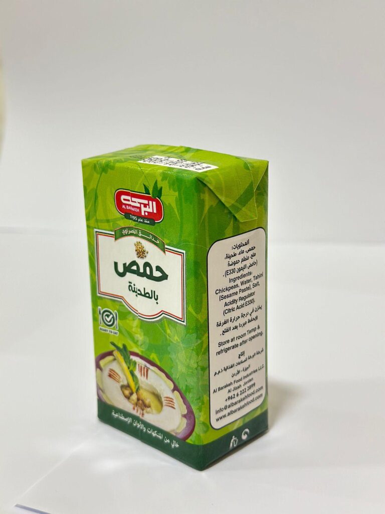 لا يحتاج إطلاقاً إلى أيّة إضافات أو حتى تبريد بفضل علبة التيترا باك Tetra Pak؛ التي تساعد على إبقاء الحمص طازجاً طيلة فترة ما قبل استهلاكه.
